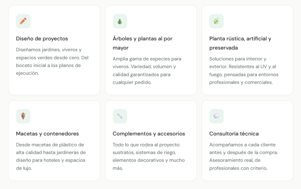 Arboles & Diseños nació de una convicción simple: los profesionales del verde merecen una plataforma que hable su idioma. Somos una empresa especializada en el sector del viverismo y el landscaping, construida por personas que conocen de primera mano las necesidades de un vivero, una empresa de jardinería o un arquitecto paisajista.